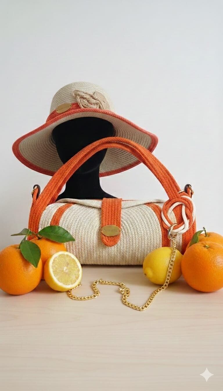 "Immerse yourself in the timeless elegance of Positano. Crafted from pristine, certified cotton, this set evokes the airy feeling of natural linen and the sophistication of Italian summer. Row by row, the structured design takes shape with artisan precision, offering a clean, architectural look. More than a bag and hat, it is wearable art for those who desire exclusive, refined luxury inspired by the Mediterranean.